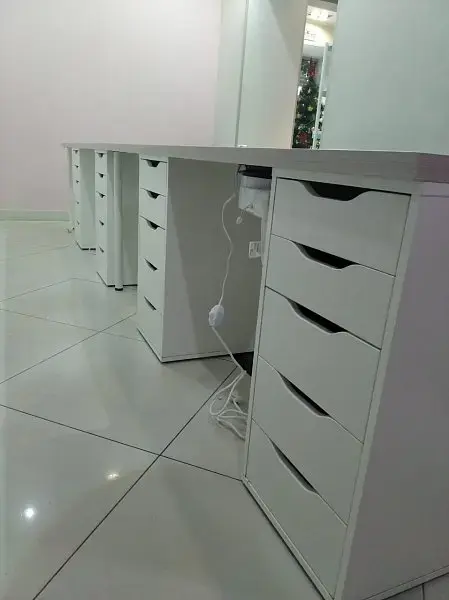 Если комплект мебели: столы для маникюра, макияжа, мебель для хранения и обработки инвентаря — удобен, практичен, он позволит мастеру с легкостью и быстро использовать рабочее оборудование, не заставляя клиента ждать. Не забывайте о надежности — износостойкие мебельные конструкции останутся в целостности при ежедневном многократном использовании.