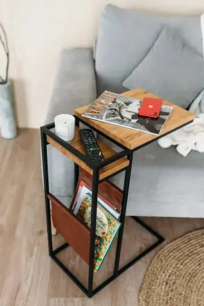 Маленький столик для ноутбука в стиле лофт - компактное и эстетичное решение для вашего дома. Этот журнальный стол со съемный карманом из натуральной кожи, стильный и красивый, подстроится под ваши запросы и решит сразу несколько задач в интерьере.